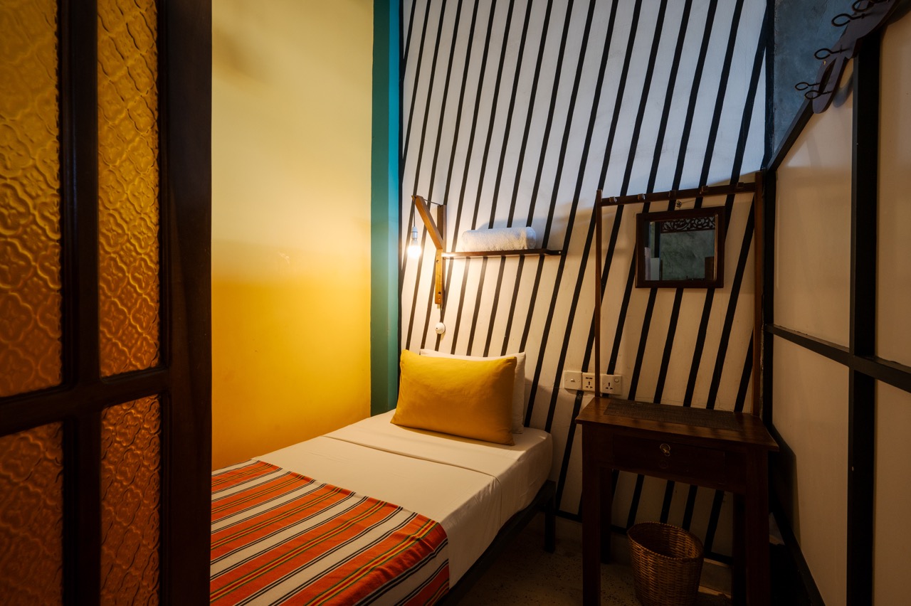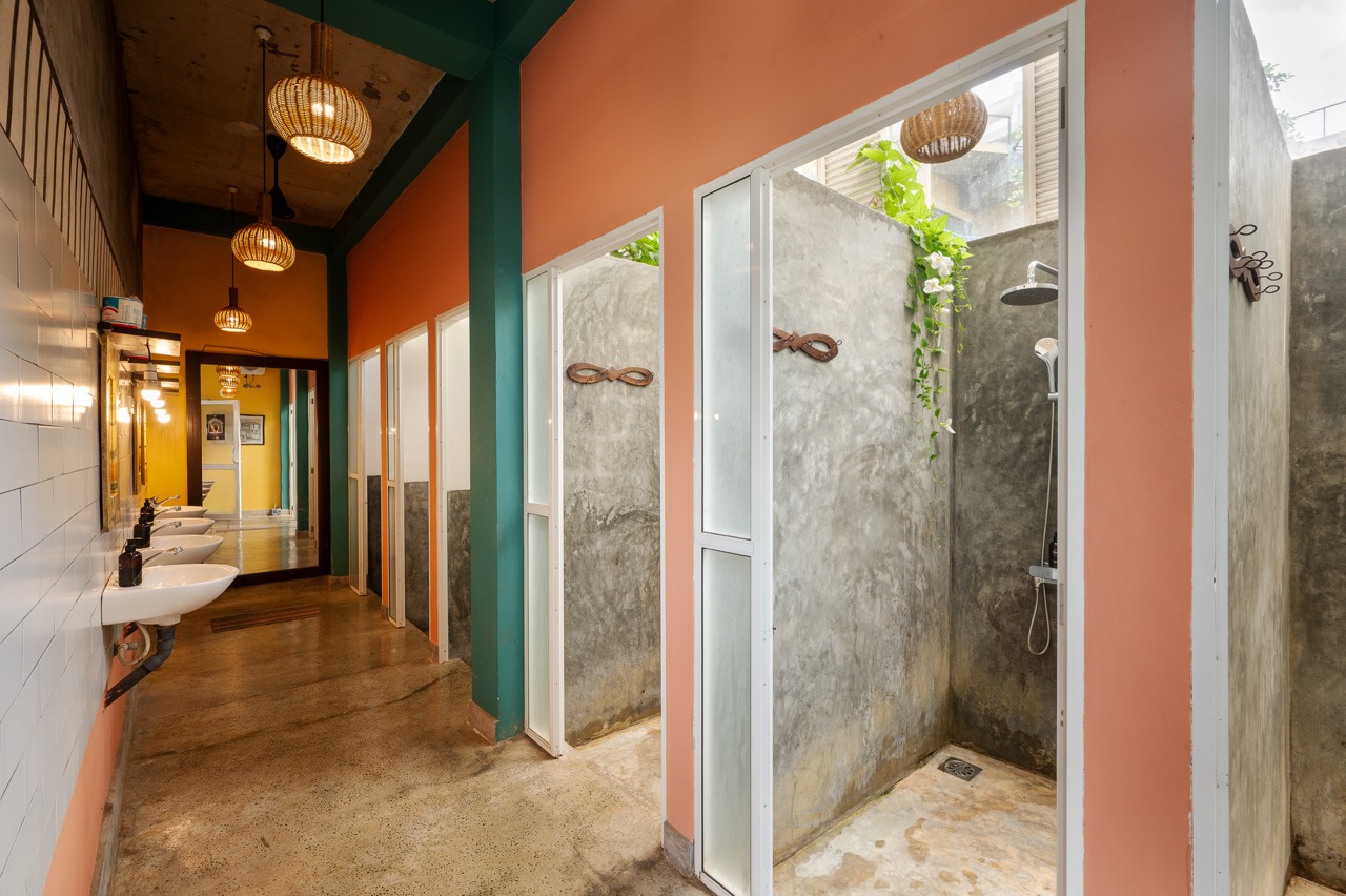 Located in a shared, air-conditioned building, each cozy 7’x7’ studio dorm comes equipped with a comfortable 9’ single bed, a private safe, free wifi, and bed linens and towels. The building shares bathroom facilities composed of three showers and three restrooms, providing ample space for all hostel guests. Our shared studio hostel is the perfect option for solo travelers or friends passing through the south coast, looking for somewhere peaceful to sleep after long days spent in the surf, sand, or shala.